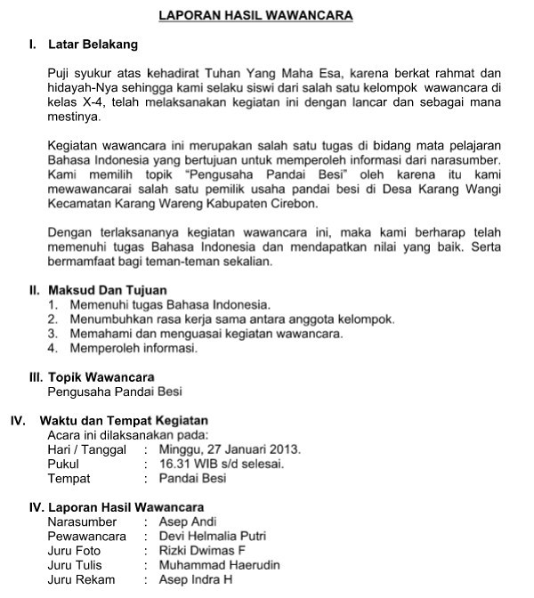 - Menyampaikan Laporan Hasil wawancara sebaik mungkin.